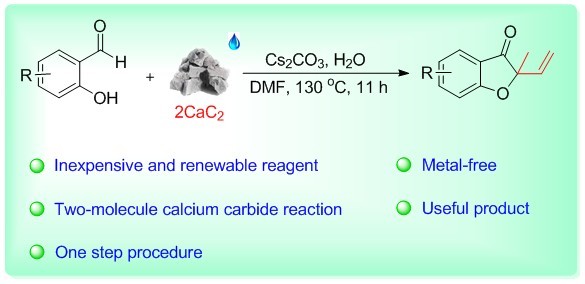 本论文首次报道了由两分子碳化钙和各种水杨醛在无金属催化条件下,通过环加成反应合成了甘丙肽受体拮抗剂和灰黄霉素药物的中间体3-苯并呋喃酮。该合成方法的显著特点为广泛可获得的起始原料,廉价易处理的炔源,以及经济高效的绿色合成路线。此外,本研究立足张掖周边,结合地方优势资源,能够实现碳化钙的高值化利用,可为本地区经济发展提供技术支持。