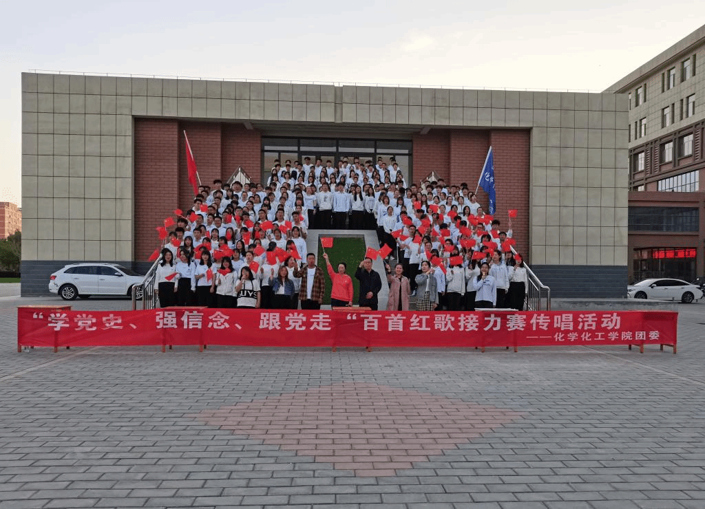 为庆祝建党一百周年,弘扬爱国精神,重温红色经典; 唱响红色歌曲,以红歌为契机,歌颂党的宏伟历史,传承党的精神文化,弘扬时代的主旋律,激励广大青年的爱国热情,同时增强班级凝聚力,丰富校园文化生活,太阳成tyc122cc集团于2021年5月7日在实验楼下隆重举行“百首红歌接力传唱”活动。辅导员马晶晶,化工172班马应军、应化171班安少斌、化工172班李昊、化工172班何巧玲应邀出席并与全体大一、大二同学共同欣赏了本次精彩的红色盛典。