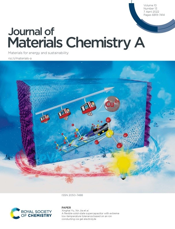 近日,公司太阳成tyc122cc集团禹兴海老师与公司特聘教授、石河子大学贾鑫老师共同合作完成的科研成果“A flexible solid-state supercapacitor with extreme low-temperature tolerance based on an ion conducting ice gel electrolyte”发表在国际顶级期刊《Journal of Materials Chemistry A》(中科院一区TOP期刊, IF=12.7),并作为亮点工作,被选为当期内封面文章。