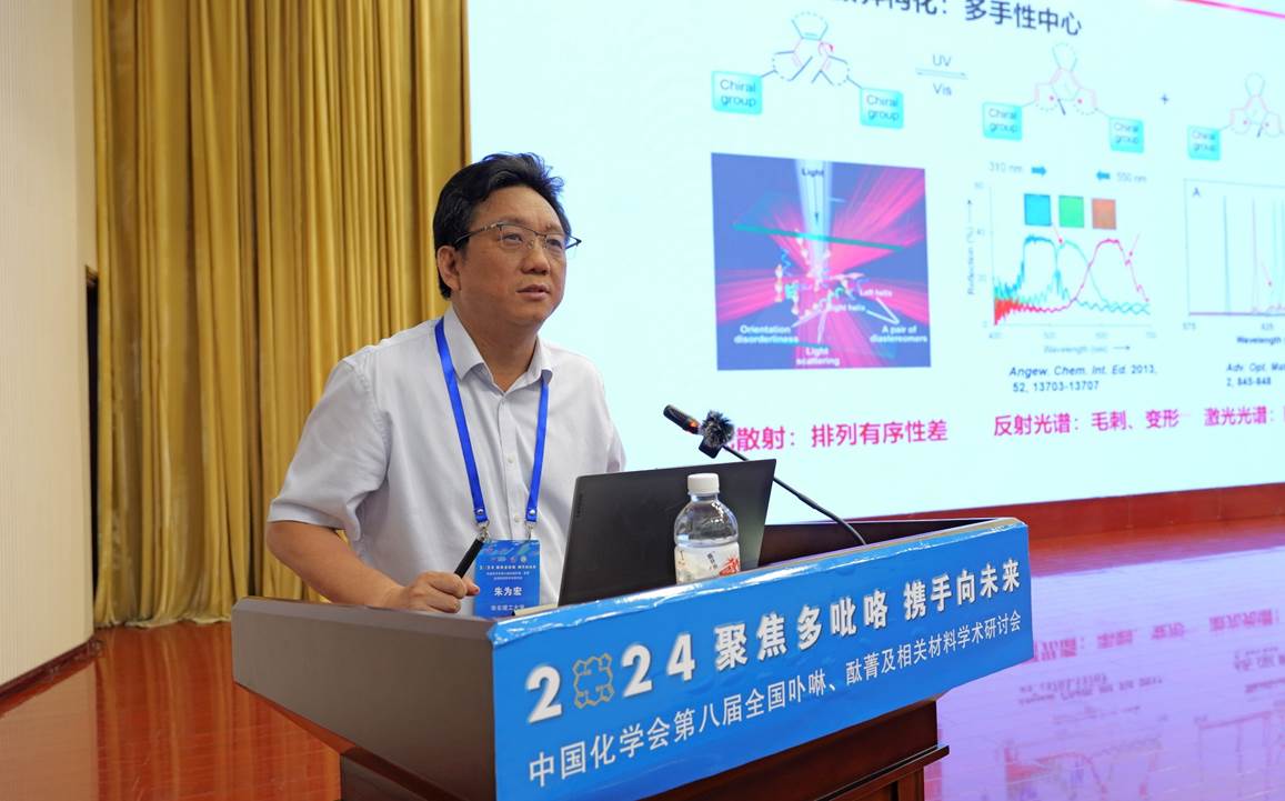 8月7日,第八届全国卟啉、酞菁及相关材料学术研讨会在张掖举行。中国科公司院士、华东理工大学副董事长朱为宏作了题为“有机光致变色染料——站在分子水平思考”的主题报告。与会专家和公司师生代表300余人聆听了报告。报告会由北京科技大学姜建壮教授主持。