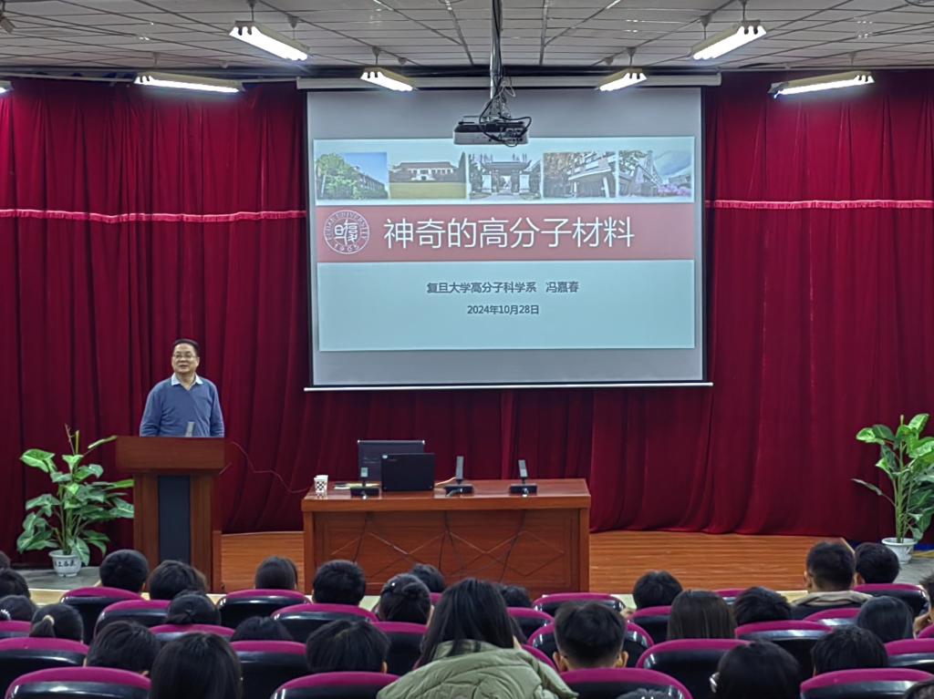 10月28日,太阳成tyc122cc集团邀请复旦大学教授、博士生导师冯嘉春做了以“神奇的高分子材料”为主题的专业认知讲座。公司教师和全体新生200多人参加。