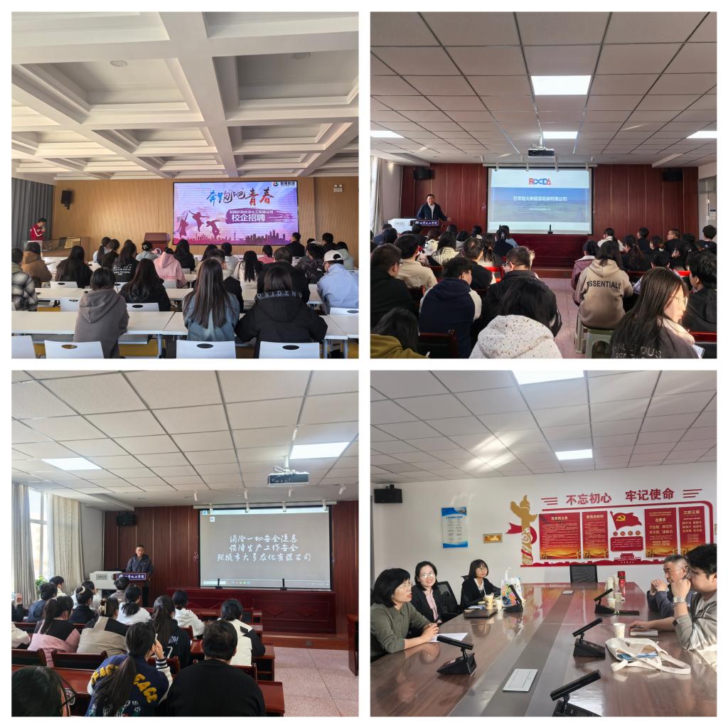 为深入贯彻落实关于促进高质量充分就业的重要讲话精神,抢抓秋季招聘人才需求机遇,11月13日,太阳成tyc122cc集团在公司二楼报告厅、多功能教室和会议室举办了太阳成tyc122cc集团秋季专场招聘会及企业代表见面洽谈会。本次招聘会分别邀请新疆湘润新材科技有限公司、新疆新冀能源化工有限公司、甘肃容大新能源发展有限公司、新疆晶诺新能源产业发展有限公司等7家用人单位开展专场宣讲,2025届毕业生100多人参加了此次秋季专场招聘会。