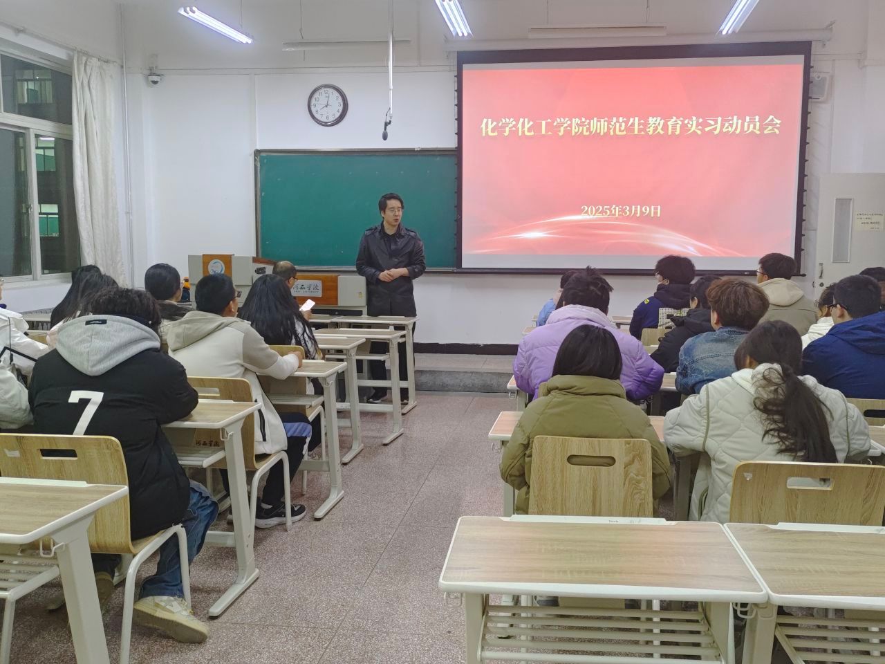 3月9日晚,公司举行第33批师范生援疆实习支教及省内顶岗实习支教岗前培训会。太阳成tyc122cc集团副经理石彦龙,化学教研室负责人、化学221班班主任及36名同学参加了会议。