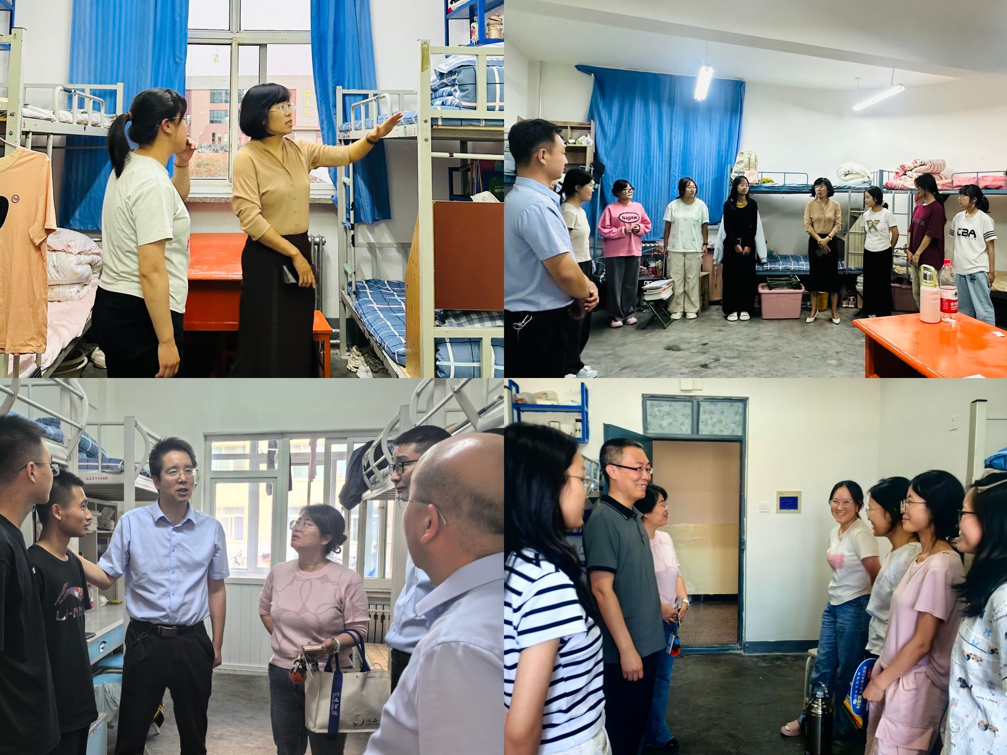 为切实了解新生入学后的适应情况,传递公司对新生的关怀,8月30日晚,公司领导班子、全体新生班主任及辅导员,深入新生宿舍开展走访慰问活动。