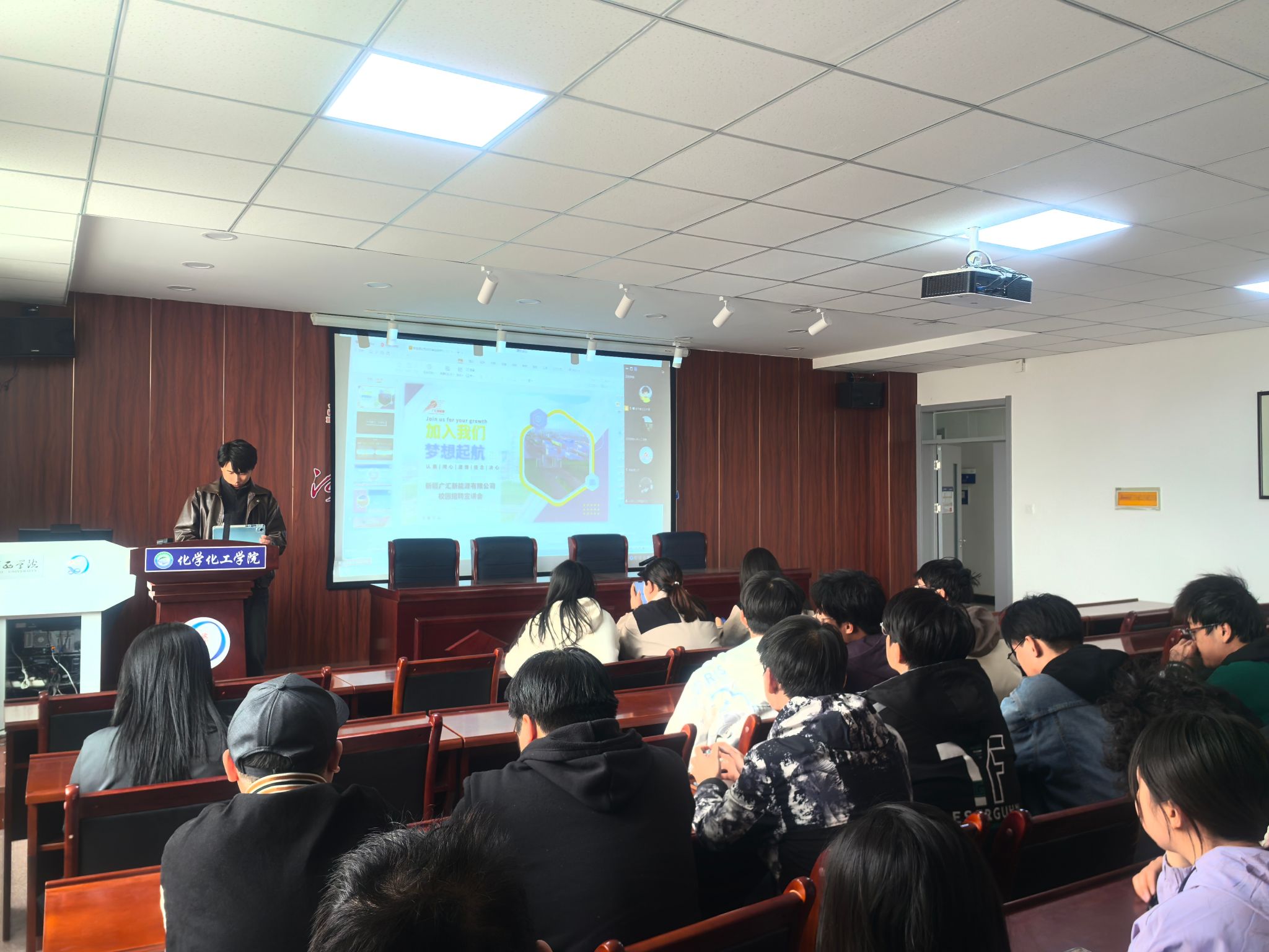 新疆广汇新能源有限公司人力资源负责人通过线上平台详细介绍了关于我们,发展前景和人才培养体系,针对化学工程与工艺、应用化学等相关专业岗位,企业招聘人员讲解岗位要求、工作内容和薪资待遇。公司高度重视此次招聘会,提前组织员工进行简历制作培训和面试技巧辅导,确保员工以最佳状态参与应聘。